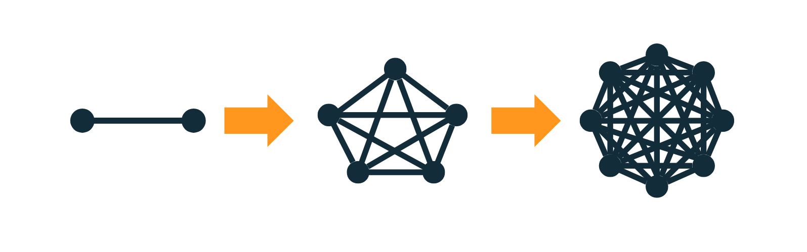 So what causes these breaking points? The answer might lie in Metcalfe's Law. This law of network theory states that the number of connections between nodes in a network grows exponentially as the network grows in size.